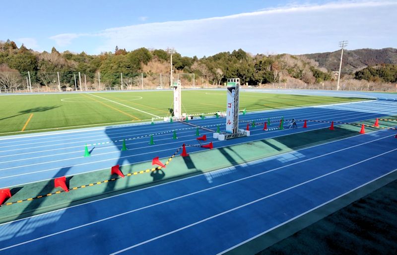 そこを越えると、本当に下りメインで競技場にゴール。アップダウンの激しいコースだと分かっていたので、自分の体調を優先するため、あえて時計は見ませんでした。しかし、ビープ音がするのでキロ表示と見比べると、ほぼ正確だったようです。