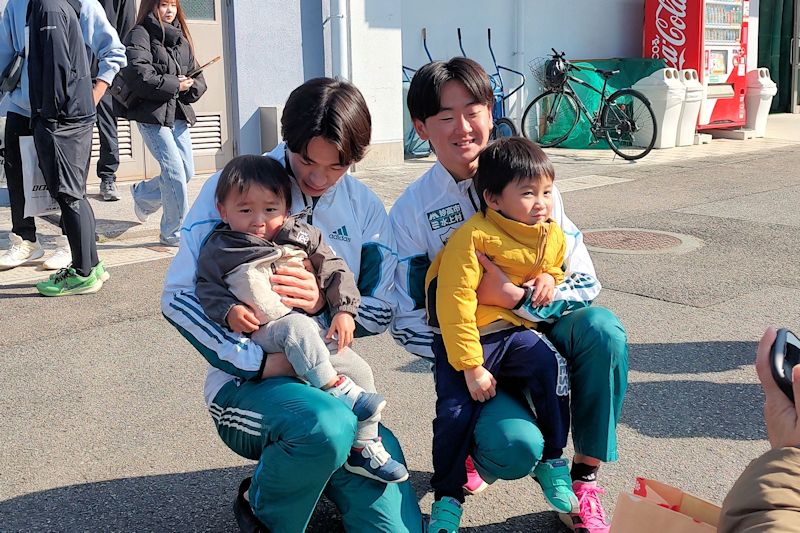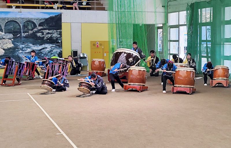 当日は天気も穏やかで、外で日向ぼっこしながら美味しくいただきました。ドームの中では、地元太鼓チームの皆さんが演目を披露していました。九州大会で特別賞を獲得するほどの腕前で、聞き入りました。走っている最中も太鼓での応援をいただき、本当に感謝です。