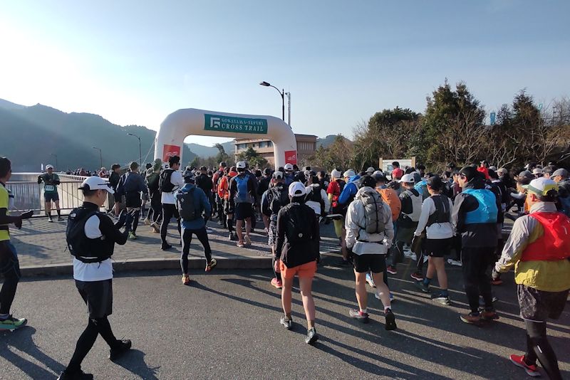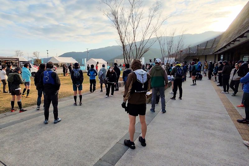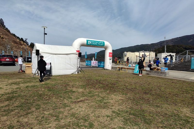 トレイルに転倒は付き物なんで驚きはしませんが、ウインドブレーカーを忘れたのとスマホの破損はメンタルやられました。指定された駐車場はスタート地点となる五ケ山ダムの下。メイン会場はその上にある五ケ山クロスベースとの標高差は100m以上。