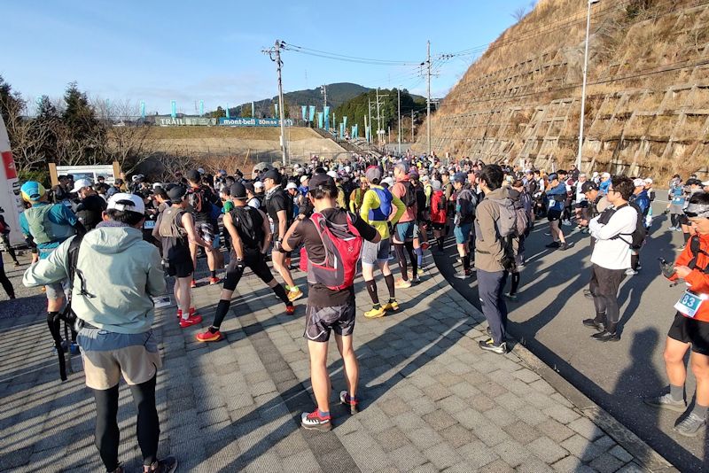 お初の参戦なのでダム堰堤を見上げながら進撃の巨人みたいじゃ~と思いながら歩いてると、横で歩いてる方が「ここを最後に登ってゴールです」と。なんと! あとで標高差を確認すると100m以上ある。最初からペナルティ・・・ 五ケ山クロスベースもお初でモンベルもあったり脊振山系のベースになってるのかな、と思って眺めてました。