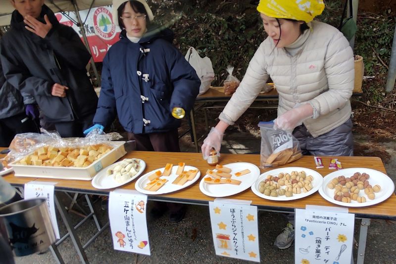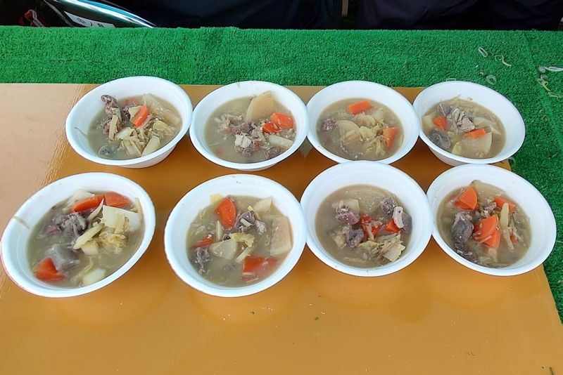 ゴール後にお土産を頂き、猪汁やデザート等充実のふるまいでした。少し落ち着いてから椅子に座ってスマホの状態を理解してから扱うと今までどおりサクサクと動作したので一安心だけど背面が剝げたのが気になる・・・