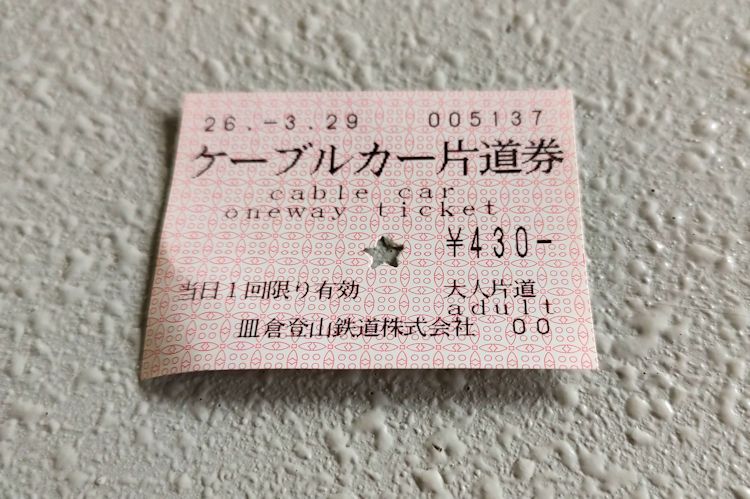 皿倉山のケーブルカーはお初。切符を出すと珍しく改札はさみで切りこみを入れるタイプで、その切込みの型が☆!日本三大夜景を意識してかな、と眺めてました。