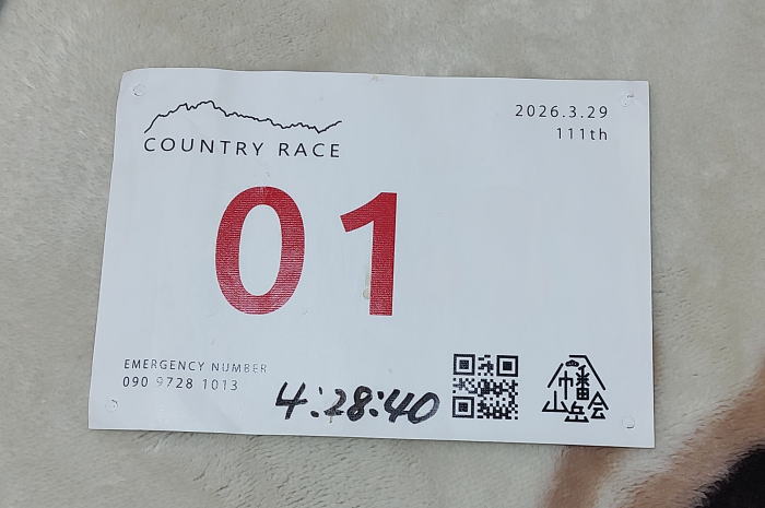 ゴールに着くと完走証は無いけど、ゼッケンにタイムを記入してもらい「完走証」。