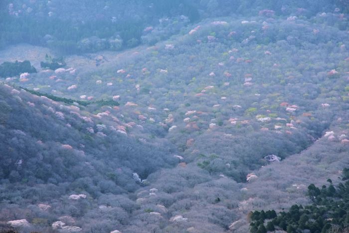 4月に入るとアケボノツツジ。なんだけど、いつもの場所だとまだ早いかな、と思い由布岳へ。