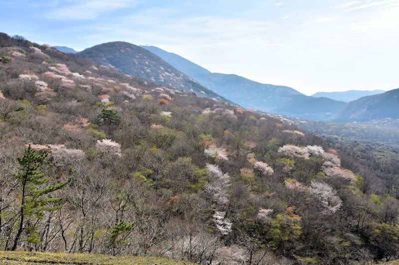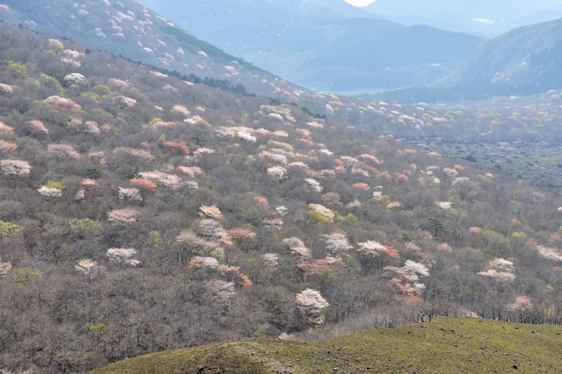 剣が峰から日向岳を見下ろした時も山桜がたくさんあったけどそれ以上。嫁さんとゆっくり花見を楽しみました。