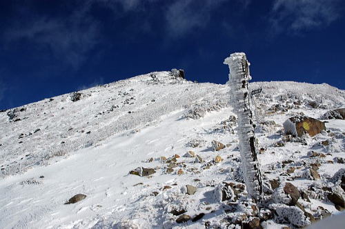 その後は、天気の様子を見てから星生山に登ることにしました。星生山から凍り付いた御池を横断し、稲星山まで歩きましたが、星生山、稲星山、特に稲星山を訪れる方は少なく、ほとんど独占状態でした。