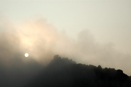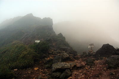 ![]() 駆け上がるガス。この時間(6:40頃)は凄い勢いで上昇気流がガスを山頂に運んでいました。 |