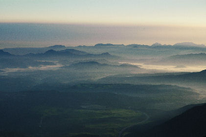 西峰より湯布院の町と遠くには久住連山 |