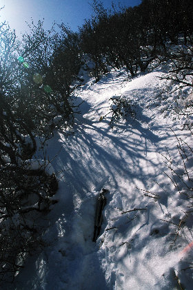 (13)南峰手前の斜面 ここが一番雪がありました50cm前後 |