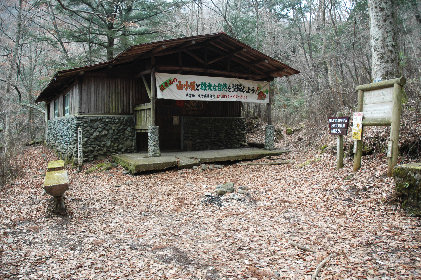 (1) 実質の登山口となる駐車場と右側が休憩所兼トイレ。 |