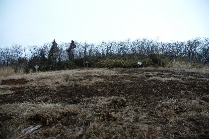 (8) 国観峠です。標高1500m程度で、祖母山まではあと一息。 この先、9合目から上はかなりツルツルでした。 |