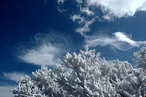 方向によっては霧氷が大きく発達しています |