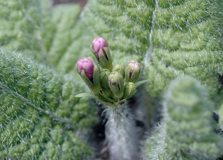 由布岳山麓サクラソウ。ピンク色になった蕾もちらほら |