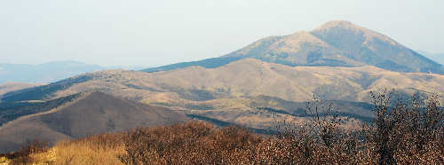 (13) 猟師山山頂。 久住山方面の展望はありませんが、涌蓋山方面は良く見えます。 |