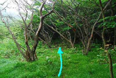 ![]() (9) 「4.展望台」先の場所 ここからは尾根歩きとなりますが、ガスの為写真がありません。 |