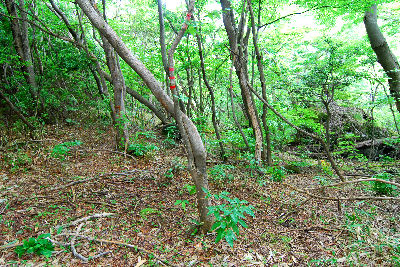 ![]() (6) 地図「3.T字路」手前。 全般に林が明るくなります。 |