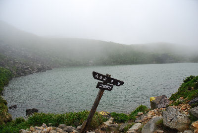 ![]() 久住山より向こうはすっかりガスに覆われ、 久住山が時折ガスの合間から姿が見え隠れしていました。 |