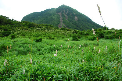| 本日のくじゅう山行イメージ。4時半頃には中岳山頂に到着、綺麗な夜明けを堪能しながらビールで乾杯、その後は雨が池でノハナショウブ、イブキトラノオを観察して大曲に戻る、といったところでした。1時過ぎに家を出発するとき天気はイマイチでしたが、多分回復するはず、との意気込みでやまなみを走っていると小雨が・・・ でも、きっと天気は回復するはず、と大曲で出発の準備を。歩き始めてしばらくするとガスが懸かり始め、すがもり越えに付いたときはガス+雨となりました。 これも一時的な雨と決め込み北千里を歩き始めるとガスはますます濃くなり、視界も10m程度と連続して黄色い目印を確認できない状態です。結果、時折完璧にコースを外れてしまい、久々にGPSがマジで役に立ちました。あのようにだだっ広い場所で一度方向が判らなくなると、最低コンパスが無いと厳しいことを久々に感じるとともに、昨年のトムラウシの遭難、遡れば、冬場ですが、まさにこの場所で遭難があったことを思い出し、改めて冷静さと判断が大事であることを感じました。 ガス+強風でペースが上がらず、結局今回も天狗が城で日の出を待つことにしましたが、山頂ではますます強風となり、気温も16℃と体感気温も下がったようで、合羽を着て手袋をして風を避けての待機しましたが、それでも寒さが身にしみました。周囲はぼんやり明るくなり夜明けを迎えたようですが、全然ガスが晴れません。一旦、中岳に場所を移動し再び待機するもガスは晴れずじまい。中岳から白口岳に移動したとき時折青空が見える一方で、雨粒が落ちるなどなんとも変化の大きい天気となりました。 鉾立峠に着いた頃、白口岳に青空が覗くようになったので、ここで青空をつまみにビールで乾杯!日頃は日帰り山行中のアルコールは無しとしていますが、今回は当初の計画の中に入っていたので呑んだのですが、後々、これが結構効いたのか、歩きが苦しくなりちと反省です。 雨が池の様子ですが、すでにノハナショウブ、イブキトラノオともにのピークは過ぎ、ミヤマラッキョの蕾が上がっていました。帰りは、一旦長者原におりて大曲に戻る予定でしたが、そー言えば指山自然観察路があったなぁ、と思いだし観察路経由で大曲に戻りました。結局、くじゅう連山の山頂はほとんどの時間、ガスに覆われたままで当初のイメージは物の見事に瓦解しました。 (2010.7.31) |