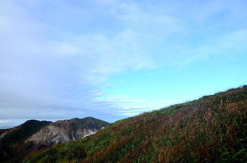 ![]() (4)中岳方面。この後、中岳方面も晴れましたが、 その後、一気にガスが垂れ下がってきました。 |