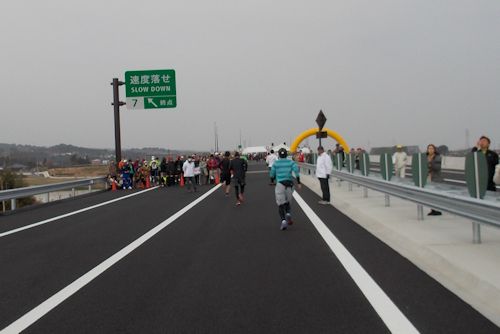 | 今回で3回目の本大会。そして3月1日に開通することで、これが最終回。 なんといっても目玉は福岡県と大分県の境である山国川を越えることです。加えて、3回出場した場合は記念記録証と記念品を差し上げます、とのキャッチフレーズ。気分は盛り上がっているのですが、ご案内のとおり体調がサッパリです。 【経過】 1月末は膝の養生のため「山はお休み」と宣言しましたが、その週末は39℃の熱で食えず、飲めずの状態が2日程続きました。インフルエンザではありませんでしたが・・・嫁さんとほぼ同時発熱でした。ようやく治ったかな、と思っていた矢先に次の週末は38℃近い熱が・・・(-_-;) 加えて、水分補給が不足したのか、賞味期限切れのビールに気が付いたので久々、飲むか〜、と350mlを1本飲んだ翌日、そのビールが引き金となったかどうかは定かではありませんが、足の親指の付け根が痛み始める等々。夏のように腫れ上がりませんでした、トレーニングを出来る状況ではなく、トホホです。それも治りかけていた週末、今度は反対の足も(T_T) 正直、落ち込み涙が出そうでした。 それでも考えられる知識と薬を駆使し、当日の朝、出場を判断することに。前日の夜は、この痛みでは無理かな〜と思いつつも朝起きると、一応痛みと腫れも引き会場に着き軽くウォームアップしてみて、なんとか行けそうです。 【大会レポ】 そんな状況で、スタートラインに立ち走り始めると、久々のレース、アドレナリンが放出されたのか、あまり痛みを感じることなく走ることが出来ました。 当然、1ヶ月近くまともにトレーニングをしていないので、足が動かないのは止むえません。折り返しを過ぎたところで、だいぶ足に来ていることは分かっていましたが、ひょっとしたら、もう少し足が復活するかも。 その淡い期待とは裏腹に、上毛P付近の登りで気合いを入れすぎたこともあり、最後の3〜4kmはペースはガックリとダウン。最後まで走ることだけを目指してゴールに向かいました。記録はハーフマラソンでは今までで最低の記録ではありましたが、完走できたことが一番嬉しかったです。 1日経過して、今までに無い筋肉痛で、歩き方もなんか変です。 今回も「ゆうたろう」が応援に。「ゆうたろう」も個人的な知り合いが出来たようで、ikaさんから声を掛けられ、ゲート付近で「ゆうたろう」と記念撮影していると、「いつも、見てますよ〜」と、全く知らない方からも声援を頂きました。この場を借りて御礼申し上げます。 今回の高速道路開通マラソンシリーズ、普通はメインの1箇所だけというのが多いと思いますが、開通場所から順次の開催、面白い企画でした。 次回は佐伯〜蒲江区間の開通記念があるのでこれに参加予定です。 |