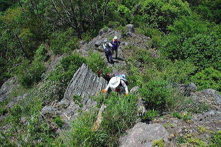 ![]() めくるめく岩場の連続ですが、岩場の上は結構暑い。 |