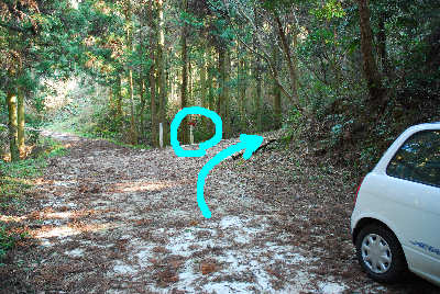 ![]() (2) 今回車を止めた場所。○の中は地蔵峠の看板 |