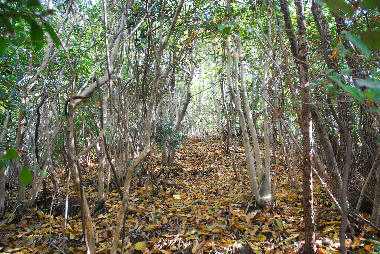 ![]() (7) 地図「3.尾根へ」から尾根に上がったところです。 ここも低木に覆われていますが、比較的歩きやすい道です。 |