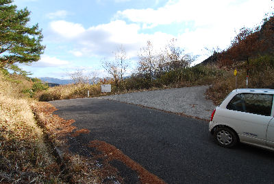 | 宝山に登った後、地図を眺め近くで登れそうな山ということで林道らしい道がかなり上まで登っている青野山(あおやさん)に行ってみました。農免道路から入り口がちとわかりにくかったですが、林道は舐めるように青野山の山麓を登っていきます。途中、通行の厳しい場所もありますが、自分の軽でも大丈夫だったので4駆なら全く問題ないと思います。 概ね台地の上に着いたところに「青野山」入り口の看板がありここからも車道なのですが、ここから先はあまり利用されていないようで、時折車の底を擦るし、雑草もかなり茂っているので、車をあまり傷めたくない方はこの入り口に車を止めて歩いた方が無難です。 この道を進むと道の脇に「青野山」の看板が立っているので、看板から杉林の中に入り5分も歩くと山頂です。山頂の看板だけはやたら多いですが、山頂周辺は杉に囲まれ何も見えない面白くもなんともない山です。 本来の登山道もあるのでしょうが、他のレポを見ても最近はどうも荒れている様子で林道フル活用のレポとなりました。 帰りは折り返さずに反対方向に林道を下ったのですが、こちらも所々で厳しい場所がありますがクリアできました。厳しかったのは一度法面が壊れて林道を補修した跡だと思いますが、そこだけ路面が粘土になっている場所でここの通過は難儀しました。ただ、乾燥している時期であれば問題ないと思います。今回のレポは下りで利用した林道を登るイメージでまとめてみました。(2009.2.1) 全所要時間 10分 登った高さ 20m 歩いた距離0.2km |