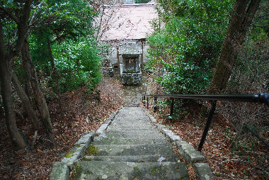 ![]() (10) 宇曽神社。階段を上がり向かって左側の奥に、奥の院に上がる階段があります。 |