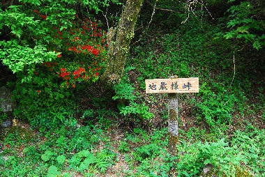 ![]() (7) 地図「地蔵様峠」 林道を横切ります。○の中には右の写真の看板があります。 |