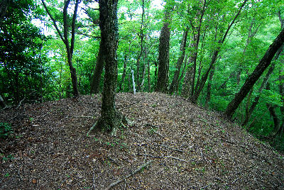 | 祖母山でお初のオオヤマレンゲを楽しみたっぷり汗を流したので、このまま帰ろうかなぁ、としっかり汗も拭き着替えた後でしたが、まだ余力がありそうだったので地図を眺めると大分百山のNo89、烏嶽が目にとまりました。見た目往復1時間程度の山と推察し(見立て違い・・・)登山口へと向かいました。 目印となるのは林道宇目小国線の「烏嶽トンネル」で、竹田市から豊後大野市方面に向かいトンネルを抜けて200mほどの場所に登山口があります。ただし、駐車場がないのでトンネル近くの広い路肩に車を止め登山開始です。最初は杉林の急登を15分ほど登ります。途中、道が分岐していますが最初は谷に沿うように登ります。ときおり看板やテープがあります。杉林を抜けると雑木が混じりやがて最初のピークへ、ここまで約20分です。実は、ここが山頂だと思っていましたが地図を見るとまだ先・・・ ここからは山歩きらしいルートも混じりちょっと気を持ち直し次のピークを通過、ちと下った後は山頂へ向かいます。周囲を良く見るとかなり急傾斜の尾根道を歩いていることに気がつくと共に、登山道も岩が結構多かったりと予想外に楽しかったりします。途中、露岩を通過すると間もなくT字路状の場所になり、左に行くと山頂、右に行くと展望台です。山頂は三角点があるだけですが、展望台からは絶景で天気が良ければもっと景色を楽しめたと思います。 (2009.6.27) 登った高さ 280m 歩いた距離 2.4km 所要時間(休憩時間除く) 70分ぐらい |