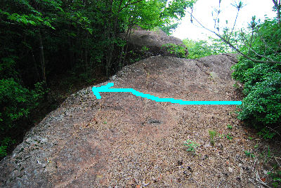 ![]() (9) 地図「4.露岩」 ピーク2を通過するとちょっと広めの岩場に出て、間もなく山頂です。 |