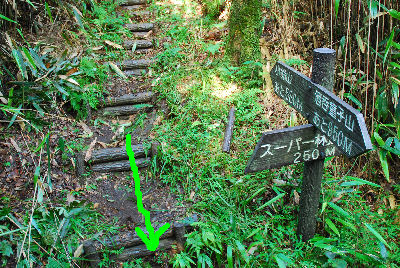 ![]() (1) 地図「1.登山口」 道路側から見たところです。 |