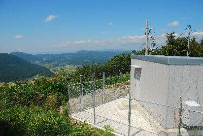 ![]() (10) 地図「6.駐車場」 車は柵の向こう側まで登ってくることが出来ます。 三角点は小屋のような電話ボックスの向こう側になります。 |
