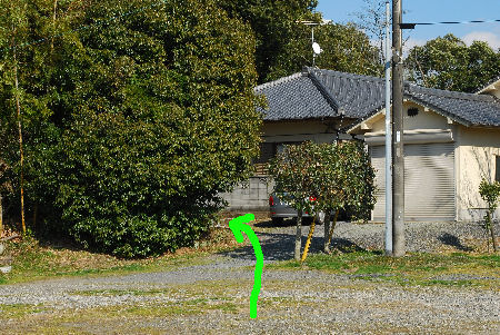 ![]() (5) 地図「0.妙覚寺入口」 右の緑の塀は産業廃棄物処理場のものです。 |