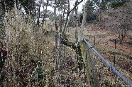 ![]() (7) 地図「3.尾根へ」 少しヤブをこいで尾根に到着すると鹿よけネットに到着。 これに沿って歩きます。 |