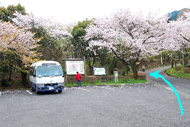 ![]() (1) 地図「1.駐車場」 桜はちょうど花見にちょうど良い開花状況でした。 |