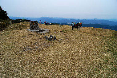 | 嫁さんの趣味に付き合うことになったこの日、自分は運転手として福岡県杷木町まで運転することとなりました。嫁さんの用事が終わるまで時間があるので登る山がないかなぁ、と探していると1等三角点がある鷹取山が目に付き、登ることにしました。この時期は気温が高く、桜の開花が早いとのこと。登山口となる県民ふれあいの森までの道もちょうど花見にいいくらいの開花状況です。自分が登り始めたのが11時前で、ぼちぼち花見客が訪れていましたが、下山してきたときには公園は完全に花見モードに溢れており、ザックを担いだおっさんが横切るには少々申し訳ないというか、場違いというか、目立たないようにして(無理・・・)広場を横切りました。 駐車場を出発してまずは花見会場となっていた中央広場に向かい、その広場の左奥に登山道の入口があります。この辺りでは比較的高いし、耳納山地の盟主でしかも1等三角点ということもあり、道は良く整備されています。時折、分岐点や林道と合流したりしていますが、いわゆる「本道」を進めば大丈夫といったところです。道の様子は若干変化はあるものの基本的に山頂まで杉林の中です。登り始めて最初は急登が続き特に「えぐ水コース分岐」手前、570mのピークまでは途中には階段があったりします。このピークを過ぎると間もなく「えぐ水コース分岐」で、ここから5分ほどで車道に出ます。車道に出て左折、100mほど歩くと山側へ取り付く看板があり再び杉林の中を歩きます。最後の急登を15分ほど喘ぐと再び車道へ出て折り返すようにして山頂に着きます。 山頂は広々としており景色も良好です。当日はやや見通しが効きませんでしたが、空気の澄んだ日にはまさに大展望の山頂です。また、山頂の少し手前にはショウジョバカマの群落がありちょうど満開状態でした。 (2009.3.29) |
