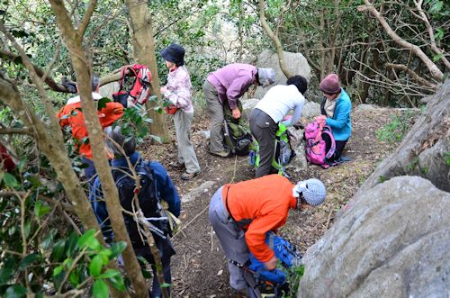 ![]() (7) 間もなく岩登りの始まりです。 |