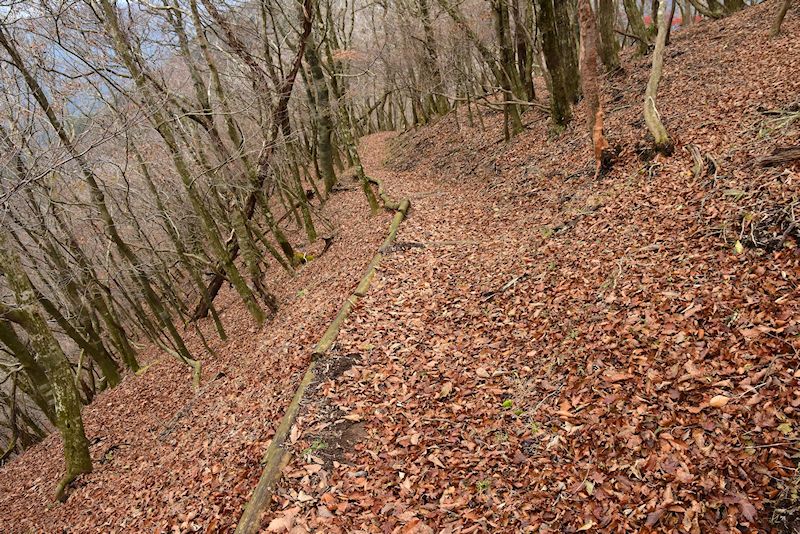 | 何気に休みにしたけど、改めて意識すると「良い夫婦の日」 今さら、というのもあるし日々の生活でわざわざ何か買わされるのもしゃくに触るし、ということで毎度ヘージツの術でいざ山へ〜 ところで、ハーフの11月11日は、と。漢字で書くと十一、プラスマイナスで「電池の日」だとか・・・ 食べ物では「ポッキー」、「たくあん」の他に「肉まん」、「生ハム」等々、食品で19あるそうです。 2年前のページから。 先週の上毛町トレイルにて。ここのトレイル気持良い〜 という声を複数拝聴したところ。 そう、県境の縦走路は気持良いんです。 ならば、と。経読岳から犬ヶ岳、一の岳を経て求菩提山へ。ずいぶん昔に歩いた一の岳から求菩提山への縦走路は今でも気持良かった印象が残っているので、ここも加えて久々歩いてみることに。 こちらの山域自体が久々だったので気分は新鮮。天気が良ければもっとテンションが上がったかもしれないけど、良い夫婦の日に休んで山に出かけた祟りか、曇天(-_-;) まぁ、ガスでなんも見えないよりマシか・・・ 経読林道に上がると紅葉もまだ残ってる。しばらくはキョロキョロしながら林道を歩き、縦走路へ。 縦走路に出ると本当に気持良いトレイル。荷物が軽ければかなりの区間走れそう・・・実際、荷物が重かったけど走った。 経読岳に着いて思い出したこと。そーいえば、山頂の看板と△点の場所が違うこと。無事、△点のある山頂に到達! 振り返ると左側にはトンガリ頭の小屋が岳、右前方には本日の縦走路が一望。遠いのか近いのか良く分からん(^^;) YAMAPの地図を確認すると茶臼山。登山道は山頂を踏まないので、恐らく、茶臼山と思われるピークを登ると看板有り。 お初の山頂からは英彦山が正面に確認。そして、これまた久々のおいづる峠。若干、湿ってるので、緊張しながら無事クリア。 縦走路は場所によって表情が変わり、茶臼山〜犬ヶ岳辺りはご案内のとおりシャクナゲの群落。その前後は雑木林で一の岳から少し先まではすっかり落葉し、踏込みが少ない落ち葉はフカフカで、足が埋もれてしまうほど。天気が良いとゴロゴロしたくなるようなクッションです。 求菩提山にへの縦走路も雑木林から杉林への変わるも、手入れされた杉林は端正。 天気が良ければ途中のベンチで湯を沸かして茶でも入れてのんびりするつもりでしたが、曇天で風もそれなりに冷たかったので、10分程度の休憩を適度に挟み食糧補給。 求菩提山に着く頃は、山頂はガスに覆われ、幻想的な風景でもありました。上宮から下る時はこんな石段があったかな〜 ここも、鬼が作った石段らしい。そー言って、あえて雑な階段作ったんかな〜 修験道な気分の一日も無事終了し、YAMAPのデータを保存するとなんと、登った山頂が一気に8つも増えてる! こんなに山の名前があるとは・・・知らんかった。 全然、関係ないけど「ろくでもない」とか「ろくなやつはおらん」とかの「ろく」ってなんだろ〜 と。 スマホで調べると、ナルホド〜 チコちゃんに怒られずに済みそうです(^^;) ついでに大相撲九州場所はと。嘉風が引退し寂しい限り。加えて大関陣がサッパリで盛り上がりに欠け今ひとつ。 白鵬の相撲は横綱の相撲じゃないし、見てて朝の若、貴景勝、炎鵬の相撲くらいかな〜 せめて最終日まで優勝を決めさせないで欲しいな〜 爺さんの呟き。 |