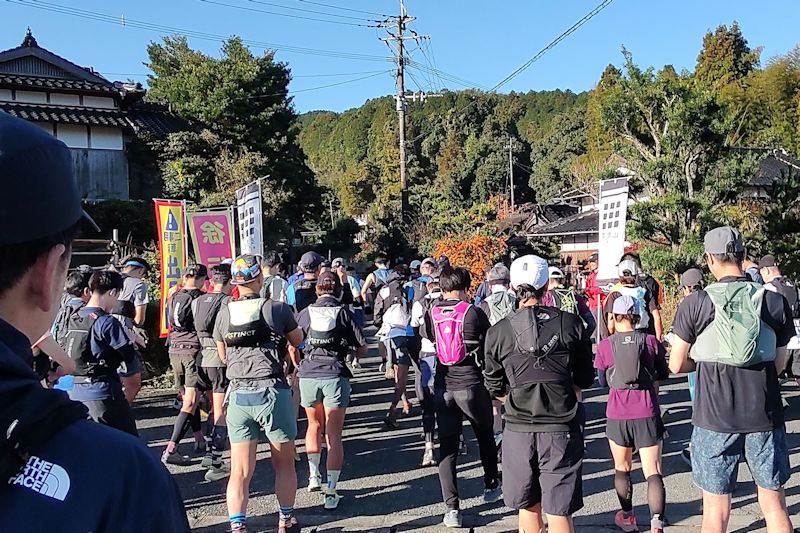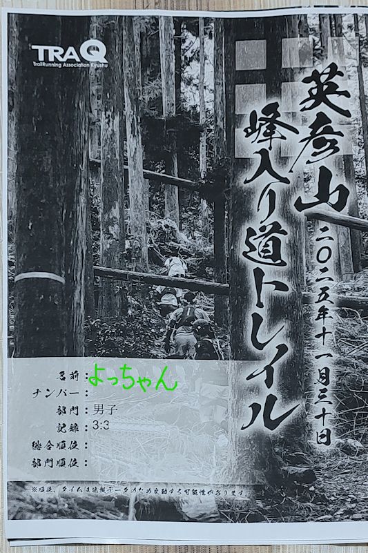 一昨年、朝6時に秋月をスタートし古処山から馬見山、焼き物の町小石原を通過、大日岳、釈迦岳を経て東峰村の筑前岩屋駅でゴールする当初のコースから、昨年は一気にその半分のコースになりましたが、昨年は何かと練習不足の自分にはお手頃かな、参戦の申し込みをするもDNS (理由は覚えてない・・・) 今回は身体の故障も無く順調にトレーニングも出来たかな?と思ってたら2週間ほど前に軽いぎっくり腰。まじか・・・軽症だったので1週間ほどして傾山の通常ルートを歩いたけど、なんとか行けるかも〜 と朝ランすると最初の1kmほどは腰に張りを感じる違和感あるけど、次第に治まるというランナーあるあるで誤魔化すしかない。 お初のスタート拠点となるカホアルペ。 とりあえず、何時間ぐらいかかるんやろと昨年の結果を見ると参戦者が50名ほど。タイム的には4時間前後と予想。受付で参加者一覧を見るとなんと100名越え! 主催のユニバーサルの社長にお話を聞くと、本人も参加者の倍増に驚いたそうでふるまい、エイドの準備に慌てたそう。 開会式の時間帯になり集まった様子をみてると昨年の50名をイメージしてたから、とても多い印象。 気になってたのは唯一の関門ASの通過時間が1時間30分。ここまで8.2km。我ながらこれは厳しい設定やなと思いつつ、気にしてるのは自分だけでなく時計を気にしてる方を多く見かけました。実走して林道が多かったのでなるほどと思ったけど、初めてだとストレスを感じる制限時間でした。 距離が短くなったのは後援となる市町村の減少かも。昨年から後援は嘉麻市のみ。以前の長距離の時もエイドの主体は嘉麻市。朝倉市、東峰村は水害もありそれどころではなかったのかも、と。 馬見山まで行けばあとは下りだけ。駐車場で準備してて横から聞こえる話では、この下りがザレてて大変らいしい。話半分にしても覚悟はしておこうと思って良かった。心構えがあっただけストレスは軽症。下りのキレはそれほど劣ってないので、ここで結構人数を抜くことができました。 最後、馬見神社に向かうところで軽くロストした間に5、6人に抜かれ足が止まったので、ゆっくり神社の前を通過し階段を駆け下り無事ゴールできました。ここにはゲートと時計が設置されゴールっぽくなってました。 |