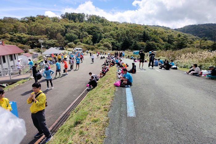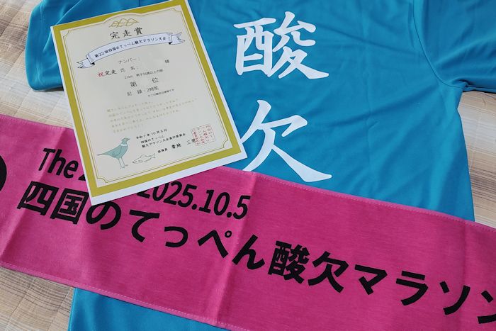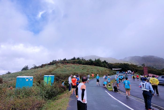 長女が帰宅した時、「おとん、はい」と手渡してくれたダヤン原画展のパンフレットと優待券。日程を確認すると10月4日が初日で場所は八幡浜市美術館。 今年はどうしよう、と思ってた「四国のてっぺん酸欠マラソン」 2年ぶりにゆうたろうを同行し八幡浜に上陸し数分で八幡浜美術館到着。 じっと、見ていると女性スタッフの方が実際の花や葉など植物は本物を張り付けているそう。嫁さんが好きだったミモザの花束を抱えたダヤンの額。 高いので一旦は諦めたし、スタッフの方も内心「買わんやろ〜」と笑い方からわかる。 どうしても気になって別の男性スタッフに声を掛けると、いろいろお気遣いしてくれて結局ご購入〜 レジに行くと最初に対応してくれたスタッフさんが「ホントに買ったんですね」 自分もそう思う・・・ 一度に支払いしようとしたらスタッフさんが2回に分けた方がおまけが2度もらえます、と。 移動する車の中で自民党総裁選の様子が放送されていて、ついつい聞いてしまいました。 本日の宿「国民宿舎石鎚」に到着。雨降りのガスの天気だったせいなのか、なかなかの外観。 受付の女性に声を掛けると電話で聞いた声の方。館内説明、時間等を聞きでかいプラスチックの部屋番号が付いた鍵を部屋に行くと昭和レトロな作りで、トイレ、洗面は共同。洋式トイレは4室中1つのみ。 部屋の中はテレビ、ファンヒーターがあるのみで潔い。普通部屋にあるお茶やそれ用のポットは廊下に共有方式。今頃のビジネスホテルなんかに慣れてる方には耐えられんかも・・・ 食堂も当然、皆さんといっしょ。天気のわりに思った以上に人が多かった。翌朝、ほとんど石鎚山に登る準備をされてました。 翌朝はすぐ近くの駐車場からシャトルバスが発着するので前日の夜ものんびりテレビを見て、翌朝もゆっくり起きてから朝食のおにぎり弁当を食べてからいざ〜 標高は1400mほどあるので、もっと寒いかもと思ってたけど天気のせいなのか思ったほど寒くない(でも、一昨年は寒くてスタート時は手袋してました) 会場となるしらさ山荘で待機、開会式は9:30からだけど、その際にスタート時間が遅れるとのアナウンスで結局20分遅れとなりました。ガチでウォームアップしてた選手からすると「え〜」と感じる時間 スタート地点に集合し後ろを見て、もう少し後ろかな〜 と場所をさがりのんびりスタート。前回より体が動いてないかも・・・早い段階からラン&ウオーク(^^;) しかも天気が回復基調のため時折射す日差しが痛い。 前回も騙されたコースの断面図。今回も事前に見て納得したけど、その時納得した自分を叱りたい。大きいこぶと小さいコブで合計4つのピークを超えるのに2回と思い込んでた。一昨年の記憶もあいまいとは情けない・・・ とりあえず往路でそーいえば、と思い出し前回は往路はほとんど景色が見えず帰りの後半でようやく景色が見えたくらい。今回は写真撮影とともに何度休憩したことか。 往路はなかなか距離が延ばずメンタル弱め。 それでも、前回とは違うUFOラインの景色を堪能できたせいか少しココロにも余裕が出始める。最後の登りの後、まだ足が残ってるかも〜と、とりあえずスピード上げてみました。前回の記録が2時間14分。これに近づけるかなぁ、と。 ただ、写真撮ってた時間もありそこには届きませんでしたが、まずまずのタイムでゴール UFOラインを完全封鎖した贅沢な大会、この時期だけど標高のおかげで太陽の下でもまったりできる良い時間でした。会場を後にして八幡浜に向かう途中で立ち寄った道の駅ではやはり下界ではたまらん暑さを感じました。 いつものように八幡浜港近くの港の駅みなっとに立ち寄りお土産と弁当を購入し四国を後にしました。 |
