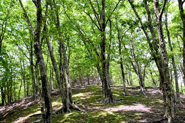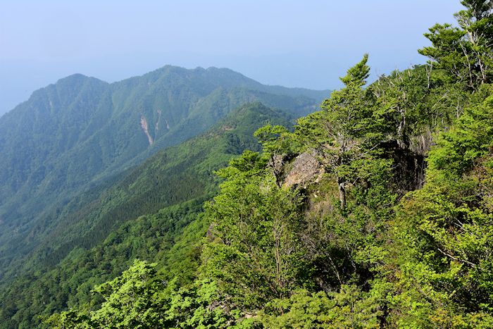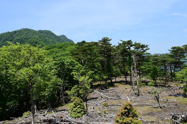 | ついてない日って、こんなかな〜、と思う様な幕開け・・・・ まずは、真夜中の道を走ってると自損かもしれんけど、結構派手にやった後の事故処理中で足止め。 久々の県道6号。杉が越えに向かう途中に「全面通行止」の看板。再登場したのでよく見ると宮ア県側の英国館付近らしい。 登山口はどっちかな〜 結果的に時間外だったので通過は可能だったけど、現場に着くまでは通れなかったら傾にでものぼろ。 通行止の工事現場を通過し日隠林道の入口に着くと「林道通行止」の看板。まじか・・・ ここも、予定していた登山口までは問題無くスルーするも、奥の登山口の手前で林道が崩壊。 分県地図に記された登山口まで着くと、伐採作業の真っ最中。路肩のスペースには伐採した丸太を積み上げ、車を停める場所もままならず、登山口まで30分ほど下の場所に車を駐車。 出発するぜ! 写真を撮ろうとするとカメラの反応なし・・・・? そーいえば、充電中のまんまじゃん(-_-;) ご存知デカザックには「スペア」ッぽいのを詰め込んでいる訳で、スペア電池を補填し事なきを得ました(^^;) アブね〜 林道を進むと災害で林道に土砂が崩れ、その先は林道自体が流失。まぁ、よくある事態と思いつつ、ピンクリボンを確認しながら登ってくと、途中でリボンは無くなるし、登山口から離れている・・・ 要因は2つ。無関係な方向に付けられたピンクリボン。そして、地図の方角と自分の頭の中のジャイロが一致してなかったこと。 それに気付いてからは、程なく本来の登山口に到着。 度重なるアクシデント。 1時間以上ロスし、当初は縦走するつもりだったけど精神的にも日隠山だけにするか〜 のココロです(-_-;) 前置きが長くなりました。 久々に自主的圏外山行。特に、理由は無く直前まで傾山に登る予定だったけど。 大崩山方面に登るとその山容が目立つので気になってた日隠山、登山口が遠い印象があり登らずじまいでした。 改めて登山口を確認すると、見立からならそう遠くなさそう。冒頭のアクシデントが無ければ登山口まで3時間半くらい。 ところで、見立の通行止は5月31日までです。日隠林道の通行止めも、上の林道分岐点の先まで行けます。 登山口から急登ですが、迷うこと無く山頂の尾根へ。 一旦、北の見晴らしが良い最高地点で本日の縦走路を確認後、△点のあるピークへ。眺望はありませんが、暑い時期にはちょうど休憩場所です。拝見した以前のレポと比べるとスズタケが皆無状態です。 ここから先、釣鐘山までの縦走路。鹿川峠、釣鐘山の看板があったので快適かも〜 と思いきや・・・ ざっくりいうと、釣鐘山へ向かう際は結構大変、でも帰りは以外と大丈夫だ〜 日隠山〜鹿川峠の間はリボンは少なく、基本尾根を確認しながらとなります。しょっぱな、日隠山の広場から尾根に降りる時、尾根はたおやかに見えるけど、岩のピークがあったりして以外とルート取りに時間がかかりました。 そうかと思えば、自然林の下、歩き易いルートもあったり変化に富んだルートが続きます。鹿川峠に向かう手前どっちに降りるか迷う小ピークがあり、後日巻道のレポを拝見しましたが、当日は直登、直下する途中から左に降りるテープに従って鹿川峠へ。 岩上からの景色は絶景です。但し、濡れている時は危ない箇所です。 鹿川峠を過ぎ休憩してると電話が・・・職場関係かよ(-_-;) と思ったら、長女から近況報告。長くなりそうだったので、「ちょっと待て」と、歩く準備をしてから歩きながら話を再開。ぜーハー釣鐘山の急登を登りながら毎度のことながら30分近く話を(^^;) 釣鐘山への急登は裸地。あっち〜 山頂近くで小休止。 今日は暑くなることを想定して魔法瓶に氷を持参。これにコーラを入れて呑むと、いや飲むと鼻の奥がジンジンして頭の芯まで効く〜 途中、3度ほどコーラ飲んだけど、山ン中で冷たいコーラを飲む贅沢は病みつきになりそう(^^) 釣鐘山の下りから見える日隠山。このクソあっち〜中をあそこまで戻るんかい・・・と思いつつ、身体を冷やしながら目指せ日隠〜 復路の日隠山頂では、△点の周りを一周して分岐まで戻り、ここでトドメのフルーツ缶! シロップまで完食し、いざ〜下山! アケボノツツジもとっくに終了した山域では誰にも会うことが無く、最初から最後までボッチの山行。 下山後は、高千穂方面に降りリニューアル中の道の駅で「栗きんとん」を調達して帰宅の途に就きました。 (2019.5.25) |