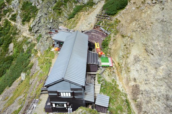 | 【概 要】 1日目: 扇沢市営無料駐車場〜爺ヶ岳登山口〜種池山荘〜爺ヶ岳〜鹿島槍ヶ岳〜八峰キレット小屋(泊) 2日目: 八峰キレット小屋〜五竜岳〜遠見尾根〜アルプス平 下山後:アルプス平〜テレキャビン〜(徒歩15分)〜JR神城駅(410円)→JR信濃大町駅(バス 1,360円)→扇沢駅 なお、我が家から扇沢駅まで約1,000kmは自家用車です。 【プロローグ】 2013年8月に立山に登って以来の遠征です。仕事の都合や我が家の諸事情から行くなら今! と嫁さんには「今週末、遠征に行く」と言い残し8日早朝九州を脱出しました。 以前なら眼中に無かった山小屋利用。4年前と比べ、ボッカ訓練をしてないし、今回のルートは水の確保など考慮すると小屋を利用せざる得ない状況と判断。長野に向かう途中の朝に予約の電話を入れると 「混み合ってますけど、良ければどーぞ」的な返事。 もともと、人見知りな性格で混み合った山小屋に泊まる姿が想像出来ない自分でした。 【チョイス】 今回、なぜこの山を選んだか・・・。剱岳にこだわりたい気持ちもあったけど、たまたまYAMAPで見た記事に惹かれました。 地図を購入してタイムテーブルを見ると、どう見ても、どっかで1泊しないと爺が岳〜鹿島槍ヶ岳〜五竜岳は厳しそう。 実際、縦走して思うに、トレランスタイルで1日で走破したレポも拝見しましたが、今の自分には厳しいかも・・・ 何よりも、ここまで来てトレランは勿体ない。 最初は、アルプス平から登る画だったけど、テレキャビンの稼働時刻に出発時間が左右されるので思案してると、これまた、ヤマレコで今回のコースの紹介があり、「この手もあったか! ガッテン!!」 と扇沢から登る柏原新道を選択です。 でも、JRの時刻表を確認する訳でも無く、バスも1時間に1本程度あるらしい、程度で大丈夫か〜 (^^;) 【初日】 前日、は久々の長距離移動。関西あたりで、まだここかよ〜 帰ろかな〜 と弱気な気分もチラホラ。安曇野で高速を降りる頃は真っ暗で、山が見えないのでテンションもイマイチ上がらず(^^;) とりあず、爺ヶ岳登山口を確認して、ほぼ、満杯の駐車場の車中に滑り込み、明日に乾杯!! 4時前に起き、爺が岳の登山口を出発したのは、まだ暗い4時40分頃。すでに、複数のヘッデンが森の中を登っていきます。 こちらの山の登山道は良く整備されているし、九州より涼しいし、いつものペースでイケルかも・・・と、思ったのが後半ボロボロになった要因かも・・・ 最初の、ポイント地点となる「種池山荘」まで休憩無しの2時間20分。お〜、まずまずじゃ・・・ しかし、ここで調子に乗ったのが悪かった。食べる気が起こらない。冷池山荘までは良かったけど、その先から次第にペースが落ち、鹿島槍ヶ岳への最後の登りは何度休んだことか・・・今年、6月の祖母傾ワンデイの後半を思い出しました。 なんとか、幾多のピークを越え、最後の岩場中心のルートを下り、本日のお宿「八峰キレット小屋」に到着です。 【同 行】 同じ方向に登っていくうちに、ほぼペースが一緒の方と同じタイミングで休憩するので、話をするようになり、4人のユルッとしたパーティとなりました。浜松市から親子で来られた「浜松さん(仮称)」、東京から女性単独で来られたIEさん。 冷池山荘前で休憩しながら、キレット小屋の予約の件で。 浜松さん 「先週、小屋に予約を入れたけど、断られた・・・来るなら拒まないらしい」 IEさん 「数日前に予約した時は、かなり混雑してて一人、半畳のスペース、それで良ければドーゾ、って言われました。」 自分 「昨日の朝予約したら、混雑してるけど・・・予約できましたよ」 浜松さん「!! え〜! なんでじゃ〜」 キレット小屋に先着した浜松さんは無事、宿泊できるようになり、すでに息子さんとビールを頂いてました。自分も予約を済ませ、4人でテーブルを囲み、無事到着できたことに乾杯! 時刻はまだ13時半過ぎ。 前後で歩く姿を見ていて、4人ともヘロヘロ状態、途中で五竜まで行けるんじゃね、とか言ってたけど、ムリムリ〜 【八峰キレット小屋にて】 山小屋といえば滅多に満員にならない祖母山9合目小屋くらいしか知らない自分にとって、本日がお初の本格的山小屋デビュー(^^;) しかも、大混雑。 消灯時刻の頃には、食堂や廊下にも何名かゴロゴロしてました。 受付の時に部屋の場所を言われ、2階に上がると戸が付いた部屋と思いきや、スペースの位置でカーテンさえ無い状態で、要は全員が同じ空気を吸ってる状態です。IE さん、「4番です。」、自分も4番だったので、隣あわせの場所を確保。混雑のため布団は、半分に畳まれていますが、なんとか寝返りは打てるし肩が触るほどの混み様ではありません。 ビールのあとは布団の上に寝っ転がって、しばし、山談義。時間も早かったので、まだスカスカの小屋。ホントに混雑するのかな〜 と、眺めていると次第に人が増え、畳半畳のスペースはあっという間に埋まりました。 時間はタップリ、夕食までひと眠りするつもりが、標高