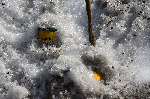 ![]() (22) 小屋付近のテント場。右側には雪が残っています。 |