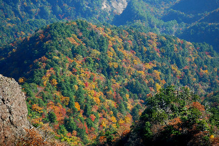 ![]() (4)天狗岩から足元の谷の紅葉を撮影 |
