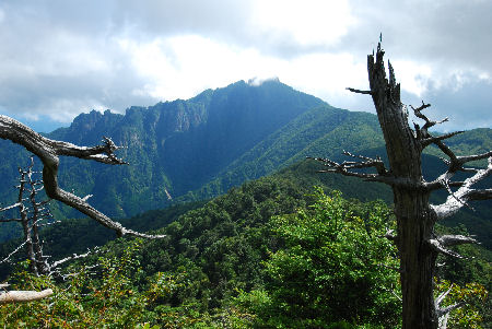 ![]() (5) 縦走路に出た付近から撮影した祖母山。 |