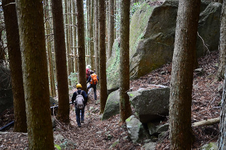![]() (27) かなり明瞭な道が杉林の中を通っていました。 |