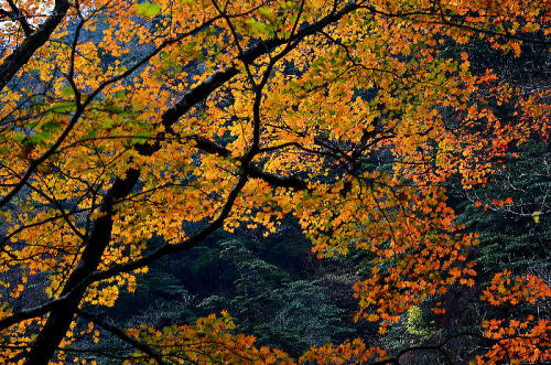 | 先週から祖母山系に足を向け始めたところですが、ご存じの通り週末になると雨が降り、雨に弱い体質の自分としてはどーしても山から足が遠のきストレスが溜まるばかりの昨今です。こーなると、天気予報に曜日を合わせるしか無い訳で昨日は「日曜日」しました。 今回の目的は少ーし「熊」、そして以前から気になっていた看板のルートです。すでに歩いた方も多いのかもしれませんが、池の原から少し祖母山よりの斜面に「メンノツラ沢へ」の看板があり見かけるたびに気になって気になって・・・いきなり登るにしては行き先が中途半端だし、ということでメンノツラから祖母山に登り折り返し池の原まで歩き、そこから今回の本題ルートを歩くことにしました。 八丁越え登山口を過ぎ神原林道を行けるところまで行ってみましたが、標高600m地点が限界で、ほぼ3年前、2008年9月にメンノツラを登ったときより林道は荒れた印象でした。結局、路肩が広場所に駐車してここから登山届ボックスのある登山口まで約30分。ここに着いた時点でまだ夜明け前、暗闇の中で水の音が響くばかりです。以前はあった対岸に渡る橋は流失していますが、なんとか対岸に取り付き踏跡、目印を確認しながらゆっくり登っていきます。 2回目とはいえ3年振り、きつかった印象と何度も目印を確認しながら登った記憶程度です。ただ、前回と違うのは焦らず登らないと精神的にきつい、という反省があったので気分的には樂でした。前回、結構ショックを受けた「まだ6合目」の看板地点でも全然堪えずメンノツラを楽しむことができました。紅葉のピークは過ぎた感じですが点々と綺麗な紅や黄の紅葉が緑に映えます。 松尾尾根に登りあがってからはひたすら縦走路に向かって登ることになりますが、スズタケ、倒木でこの区間が肉体的にきつかったです。縦走路に出るとガスがかかり祖母山頂方面もお隠れになっています。登り始めてから約4時間、9時30分に山頂に到着するも終日晴れの天気予報とは裏腹に山頂はほとんどガスの中で、時折下界が見える程度です。 45分程度山頂に滞在しましたが東京から来たとい女性と熊本からの年配の男性の2名にお会いしたのみでした。男性の方が「どこから登りました?」、自分「メンノツラからです」というと「懐かしいなぁ。今まで聞いた中で初めてだ〜」と感激した様子で祖母傾山系の登山道について話をしました。東京からの女性は直接話はしませんでしたが、このあと久住山に向かうとのことでした。 11時前に山頂を出発。しばらくはガスの中ですが宮原分岐を過ぎるあたりから次第にガスが切れ始め、池原直前では陽が差し始めました。尾根の西側はガス、東側は晴れその中に差し込む陽光・・・幻想的(ちと大げさかも・・・)な雰囲気の中紅葉を見上げしばし感動しておりました。 池原展望台に行ってみると祖母山頂も見え始め、尾根から半分はガスがかかり最初は天気予報を恨みましたがこれはこれで感動し、しばらく展望台の杭となっていました。 【メンノツラ沢へ】 ようやく本題です。看板から踏み跡はやや弱いものの赤テープが密に貼られているのであまり迷うことは無いし、もし赤テープが無くなったらある場所まで戻って探せば次の目印が見つかります。途中、地図では確認できない小さいピークや崖がありますが、これらの場所はどちらかに目印が振られているので良く確認すれば見つかりました。 急降下(急登)は○○m標高点から谷に降りる場所で、ここはルートの確認と安全面の両方とも要注意の場所でした。そして、谷に降りここを下るのかなぁ、と思っているとそこを超えて対岸の尾根まで進みそこを下るのですが、谷を通過する箇所は少し目印などがわかりにくくもあったので要注意と感じました。最後の尾根に乗ってしまえばあとは最初の分岐に戻ります。谷に降りつくと右手に滝が見えこれを背中にして谷を渡り登山道に戻ります。 気になっていたルートを歩くことができ、そして綺麗なルートで満足の山行となりました。 →メンノツラの詳細はこちらから |