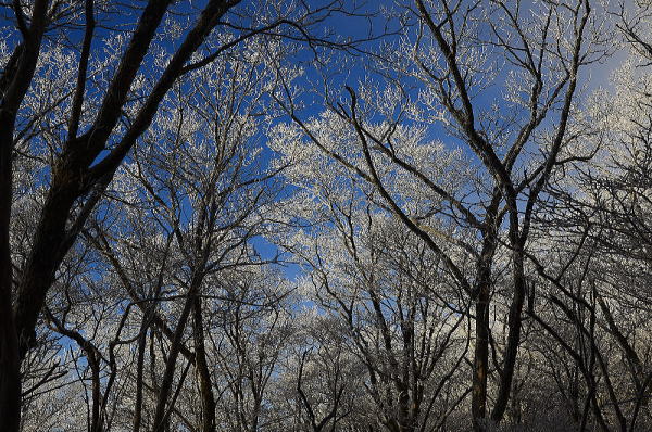 | 年末に登った山を折り返すように年始めから由布岳、くじゅう山系(大船山)ときたので、最後は祖母山というわけではありませんが、前回、祖母山に登る予定が所用で場所を変更したので今回は「祖母山」ということで。でもって、そろそろテント泊もいいなぁ、ということもありテント泊用の道具をひととおりザックに詰め込んでトレーニングを兼ねていざ出発です。 今回は少し試したいこともありまして。 最近メジャーになりつつあるアウトドアメーカー「ファイントラック」、すでにご存知の方も多いとは思いますが、アンダーウエアを購入したのでその試着と効果のほどを試すことにしました。シャツは「フラッドラッシュ・スキンメッシュ」手袋は「フラッドラッシュ・パワーメッシュ」というアイテム。両方ともスケスケで特に、シャツは単体で着て歩いているとちと怪しい出で立ちになります。 この上から、通常のシャツ(本当は同メーカーのシャツが望ましいようですが)と手袋を上に装着してみました。最初はいつもより一枚余計に着ているので暖かさ(暑さ)を感じるものの、それほど汗も感じません。途中、暑くなりいつものようにカッパを脱ぎ最後はヒーハー言いながら山頂に到着。あまり意識もせずコーヒーを入れる準備などしていました。後になり、そーいえば汗で濡れたべたべた感があまり無かったなぁ、と。 最初は着心地というか生地の肌触りが硬い感じもしますが、慣れればなんと言うこともなく、もう少し活用してみたいと感じました。 コースは前回と逆回り、黒金山尾根から祖母山、宮原を経由して下山するコースです。登山口には5時頃到着。月夜に照らされる稜線にはガスが押し寄せています。ただ、さほど厚い雲ではないので縦走路にたどり着く頃には晴れることを期待して登り始めました。雪は前回と同様に1,300mを越えた辺りから、1,400m以上になるとアイゼンを着けても歩けるくらいで圧雪状態でもあるので安全のために今時期はアイゼンの持参オススメです。縦走路に出る頃からガスが懸かり始めるのですが木々は樹氷化粧となっていて、これは予想外でした。 縦走路そばの展望台に出てみましたがこの時点で、1,500m付近から上はガスに覆われ全容はわかりませんがどうやら久々に樹氷を見上げながら歩けそうです。山頂に近くなるに連れ青空も覗き始め着雪の量は少ないものの木々の枝は真っ白になっています。難関と思っていた最後の梯子場も今回はさほど苦労もなく山頂に登り着くと雲海状態で下の景色が良く見えません。しばし、コーヒーを飲みながらノンビリしていると次第にガスが晴れ始めすっきりとまではいきませんが景色もまずまずです。 それにしても本日は誰も登ってきません。山全体が静かです。そーいえば、今日はセンター試験日、でも関係ないし・・・そのうち登ってくる方とすれ違うかなぁ、と思っていましたが誰も登ってきません。下山してみると尾平の駐車場周辺は自分の車だけで、途中の大障子岩の入口、上畑にも車なし、となんとも静かな一日でした。 今回、祖母山を登りながら、くじゅうや由布岳と比較しそれぞれの山って自分にとってどんなんだろう、と考えていました。一言でいうと由布岳はトレーニングの山、くじゅうは景色や雰囲気を楽しむ山、祖母山系はひたむきに登らせてくれる山かなぁ、と。いちがいに比較はできませんが、祖母山系は写真の被写体が多いとは言えないし、基本テント泊しないと夜明けは拝めないし、なぜか足が向いてしまいます。 今年も祖母山系に向き合えることができれば良いなぁ、と改めて感じた山行でした。 (2012.1.14) |